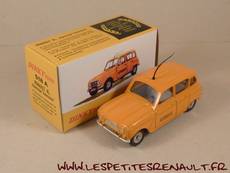 Modèle : Renault 4 L Année : 1964 Couleur : Orange Echelle : 1/43 Fabriquant : Dinky Toys Référence 518 A Collection : -- Matière : Zamak, châssis plastique Série limité : Non Boitage : Boite carton Commentaires : Décoration dépannages autoroutes. Ré-édition Norev 2013 du modèle sorti en 1970 par Dinky Toys. Illustration de la boite représentant un modèle avec une calandre de 1968. |