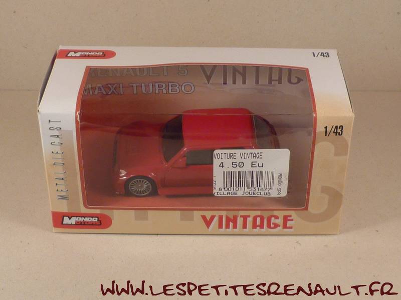 Modèle : Renault 5 superproductionAnnée : 1986 Couleur : Rouge Fabriquant : Mondo Motors Référence : Sans Collection : -- Matière : Zamak, châssis plastique Série limité : Non Boitage : Boite carton + plastique Commentaires : Vertion civile |