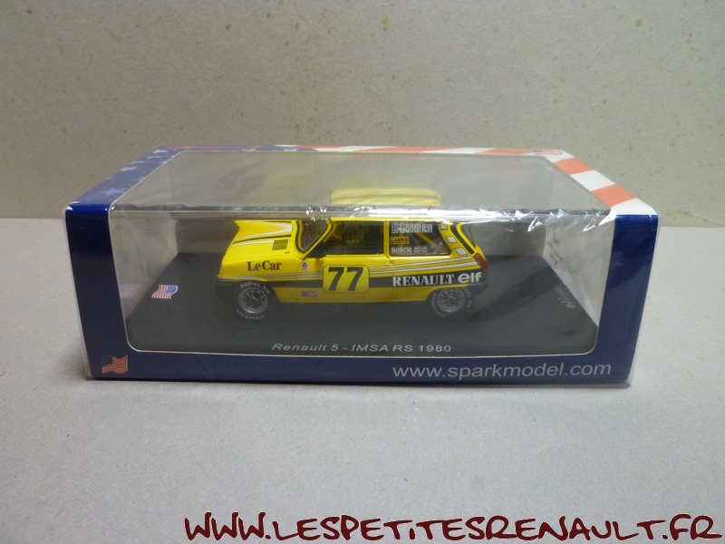 Modèle : Renault 5 Alpine Année : 1980 Course : Championnat IMSA RS Equipage : #77 Patrick Jacquemart Couleur : Jaune Echelle : 1/43 Fabricant : Spark Référence : US059 Collection : Non Matière : Résine Série limitée : 28/400 Boitage : Boite cristal + surboite Spark Commentaires : Version ayant participé au championnat IMSA RS en 1980. |