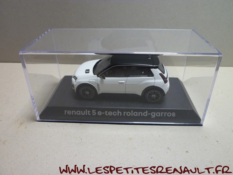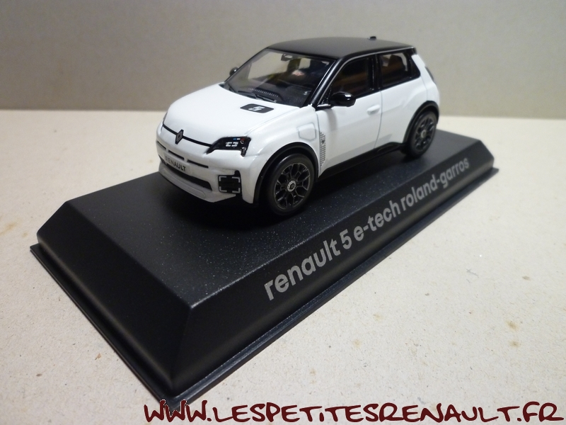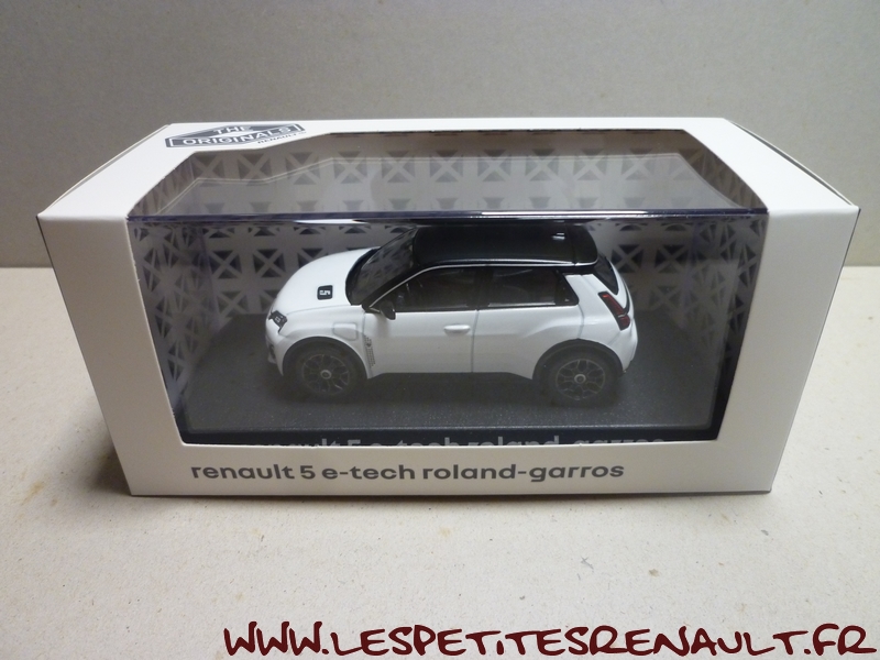 Modèle : Renault 5 e-tech Année : 2024 Couleur : Blanche Echelle : 1/43 Fabricant : Norev Référence : 7717274275 Collection : Non Matière : Zamak, châssis plastique Série limitée : Non Boitage : Boite cristal + surboite Commentaires : Version Rolland Garros 2024. |