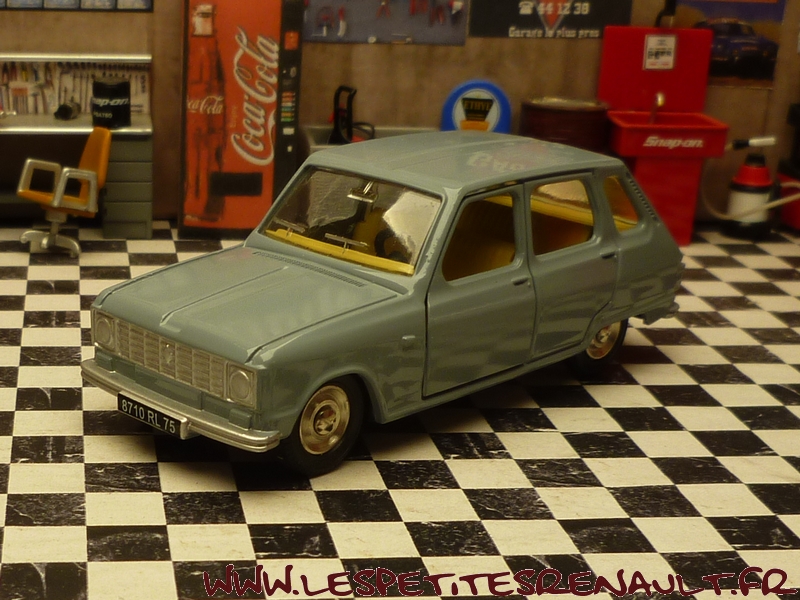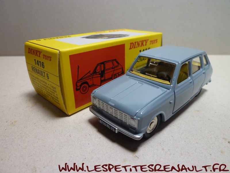 Modèle : Renault 6 TL Ph2 Année : 1974 Couleur : Grise Echelle : 1/43 Fabricant : Norev Référence : 1416 Collection : Dinky Toys Collection (Atlas) Matière : Zamak, châssis plastique Série limitée : Non Boitage : Boite carton Commentaires : Version phase 2 (phares carrés). Ré-édition du modèle Dinky Toys Spain par Norev pour Atlas avec portières ouvrantes |