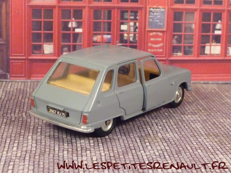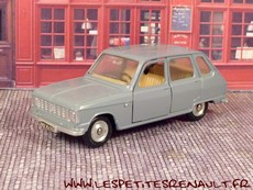 Modèle : Renault 6 phase 2 Année : 1974 Couleur : Grise Echelle : 1/43 Fabricant : Dinky Toys Référence : 1453 Collection : Non Matière : Zamak, châssis plastique Série limitée : Non Boitage : Boite carton Commentaires : Production Dinky Toys Spain. Clignotants avant mal positionnés (devraient être dans le pare-chocs) |