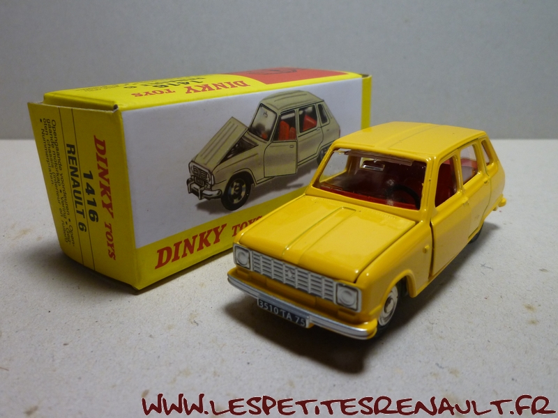 Modèle : Renault 6 TL Ph2 Année : 1974 Couleur : Jaune Echelle : 1/43 Fabricant : Norev Référence : 1416 Collection : Dinky La sags des ouvrants (Atlas) Matière : Zamak, châssis plastique Série limitée : Non Boitage : Boite carton Commentaires : Version phase 2 (phares carrés). Ré-édition du modèle Dinky Toys Spain avec portières et capot avant ouvrants. Fabrication commandée par Norev auprès de Well-Trip en Chine pour le compte des éditions Atlas |