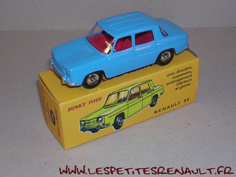 Modèle : Renault 8 Année : 1962 Couleur : Bleue Echelle : 1/43 Fabricant : Dinky Toys - Atlas Référence : 517 Collection : Dinky Toys Collection (Atlas) Matière : Zamak, châssis tôle Série limitée : Non Boitage : Boite carton Commentaires : Ré-édition 2009. Version avec direction, suspensions, vitres et jantes concaves |