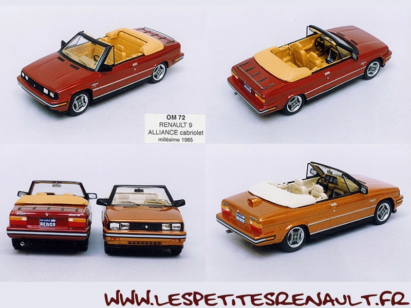 Modèle : Renault Alliance cabriolet Année : 1985 Couleur : Bordeaux Echelle : 1/43 Fabricant : Original Miniatures Référence : OM72 Collection : N/A Matière : Résine Série limitée : Non Boitage : Boite carton Commentaires : Version cabriolet de la Renault 9 US |