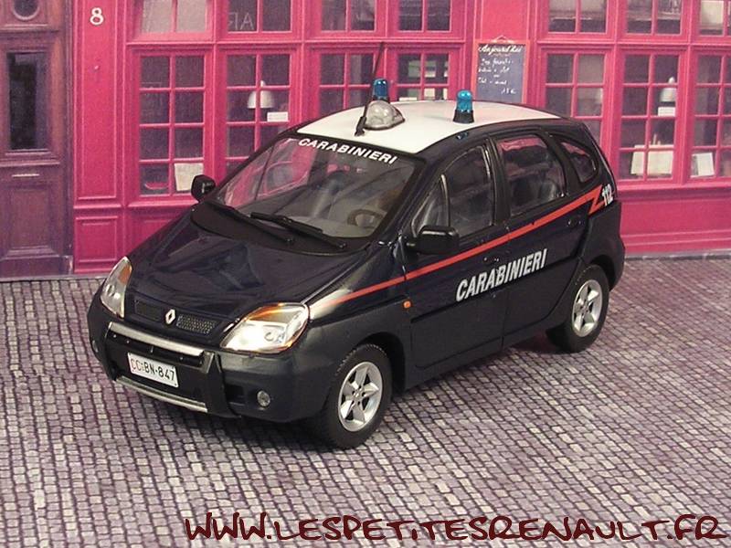 Modèle : Scenic I phase 2 RX4 Année : 2003 Couleur : Bleu marine Echelle : 1/43 Fabricant : Universal Hobbies Référence : 73766 Collection : Police (Deagostini) Matière : Zamak, châssis plastique Série limitée : Non Boitage : Socle + Blister Commentaires : Version Carabiniers italiens |