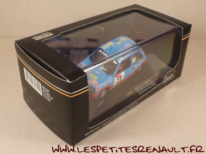 Modèle : Supercinq GT Turbo phase 1 Année : 1988 Course : Rallye de Monte Carlo Equipage : #26 - Mauffrey / Grateloup Couleur : Bleu ciel Echelle : 1/43 Fabricant : Ixo Référence : RAC227 Collection : Non Matière : Zamak, châssis plastique Série limitée : Non Boitage : Boite cristal + surboite Commentaires : -- |