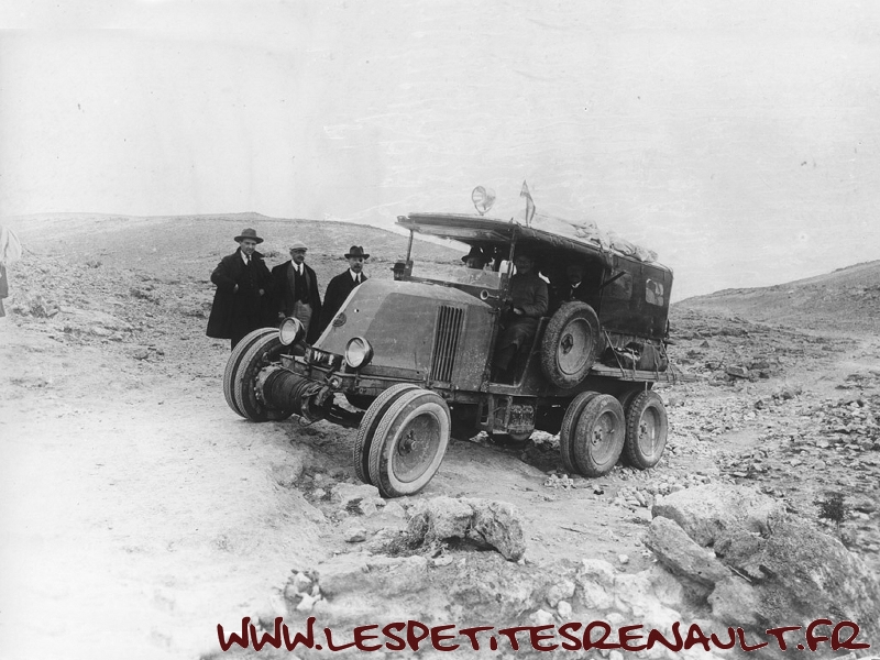 Entre l'Algérie et l'Afrique Occidentale Française, le Sahara constitue une barrière que le chemin de fer n'a pas franchie. Renault met au point ses six-roues. En fait 12, puisqu'elles sont jumelées de façon à mieux porter sur le sable. Avec leurs deux essieux arrière moteurs, ces voitures allient bonne capacité de franchissement, facilité d'utilisation et velocité par rapport à des chenillettes. Fin décembre 1923, première mission réussie en ralliant Touggourt à Tozeur en 2 jours. Dans la foulée, l'expédition Gradis-Estienne effectue en janvier 1924 la jonction Algérie-Niger. Le 15 novembre 1924, M et Mme Delingette, accompagnés du mécanicien M. Bonnaure, se lancent dans la traversée de l'Afrique, de Colomb-Béchar au Cap. Ils y parviennent le 3 juillet 1925, ayant pendant le périple dépassé la mission Citroen Centrafrique. Une aventure exceptionnelle de 23 000 km au cours desquels ils auront traversé 35 rivières en pirogue et construit ou aménagé 129 ponts. |
