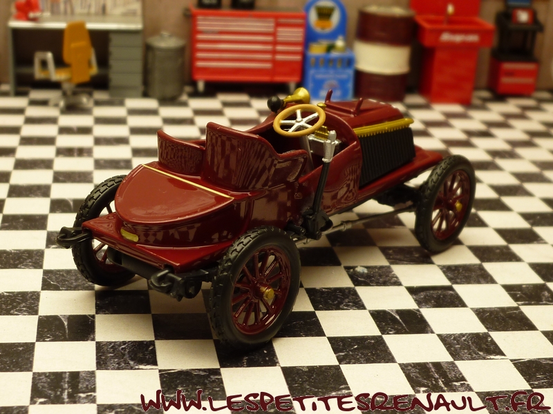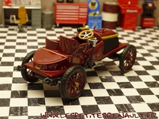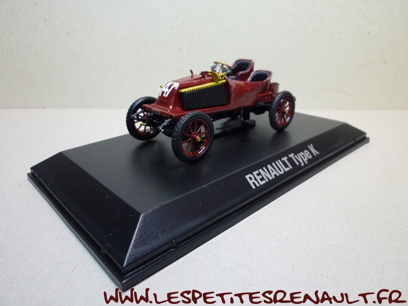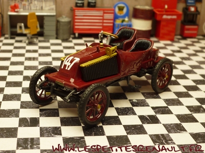 Modèle : Renault type K Année : 1902 Course : PAris-Vienne Equipage : #147 Marcel Renault Couleur : Bordeaux Echelle : 1/43 Fabricant : Norev Référence : 7711575958 Collection : Non Matière : Zamak, châssis plastique Série limitée : Non Boitage : Boite carton Commentaires : 1ère victoire au classement général pour une Renault |