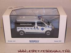Modèle : Trafic II phase 1 vitré Année : 2003 Couleur : Blanc Echelle : 1/43 Fabricant : Norev Référence : 518055 Collection : -- Matière : Zamak, châssis plastique Série limité : Non Boitage : Boite cristal 8x15, surboite Norev Commentaires : Version ambulance. Décoration aux couleurs des ambulances Eclair |