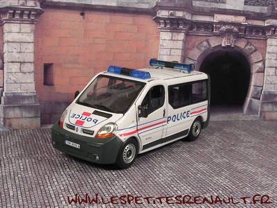 Modèle : Trafic II phase 1 vitré Année : 2003 Couleur : Blanc Echelle : 1/43 Fabricant : Cararama Référence : 61010 Collection : -- Matière : Zamak, châssis plastique Série limité : Non Boitage : Boite cristal 8x14, surboite Cararama Commentaires : Décoration Police Nationale. Version avec portes avant ouvrantes. Commercialisée sour la marque Oliex |