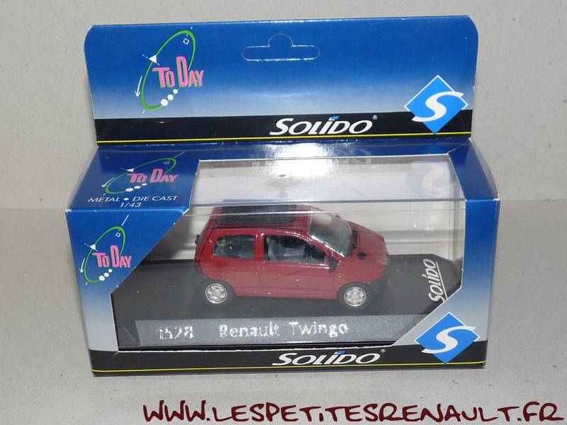 Modèle : Twingo I phase 1 découvrable Année : 1997 Couleur : Brique Echelle : 1/43 Fabricant : Solido Référence : 1528 Collection : Solido Today Matière : Zamak Série limitée : Non Boitage : Boite cristal 6x15, surboite Today Commentaires : Version capote fermée |