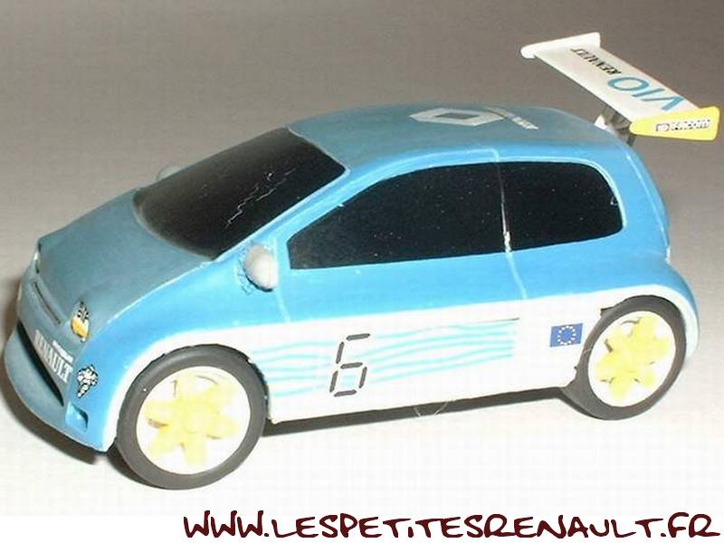 Modèle : Twingo I phase 1 V10 Année : 1997 Couleur : Bleue Echelle : 1/43 Fabricant : Gaffe Référence : 005 Collection : Non Matière : Résine Série limitée : Non Boitage : Boite carton Commentaires : Modèle spécifique équipé d'un moteur de V10, fabriqué par Gaffe et la SERM (Scale Enthusiast Racing Models) pour le compte du magasin de miniatures Virage |