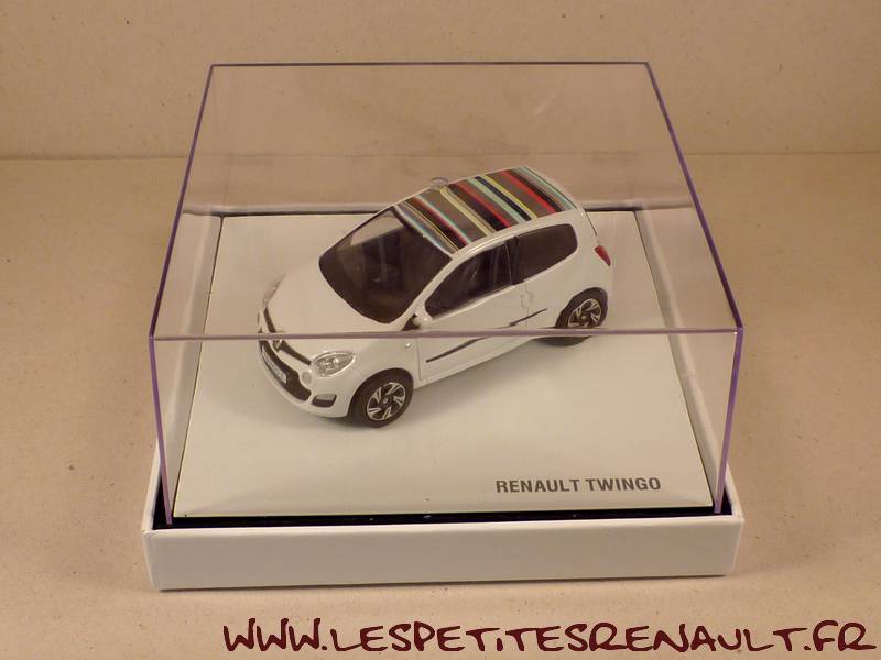 Modèle : Twingo II phase 2 Année : 2012 Couleur : Blanche Echelle : 1/43 Fabricant : Keng Fai Toys Référence : 7711431530 Collection : Non Matière : Zamak, châssis plastique Série limitée : Non Boitage : Boite cristal 11x11 Commentaires : Version phase 2 présentée officiellement le 13 septembre 2011 au Salon de l'automobile de Francfort |