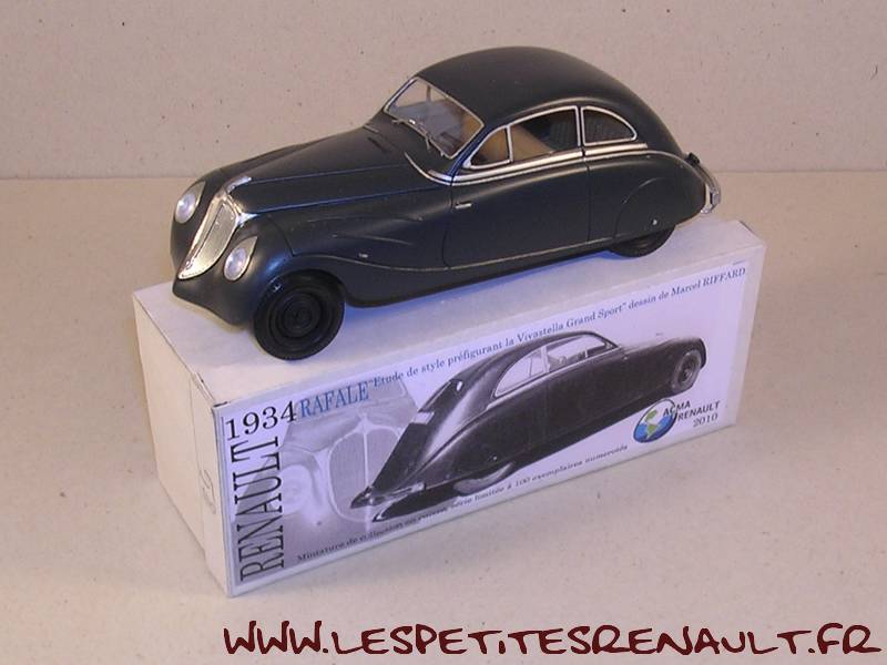 Modèle : Rafale Année : 1934 Couleur : Gris bleu Echelle : 1/43 Fabricant : ACMA Référence : 2011-1 Collection : Non Matière : Cuivre, châssis plastique Série limitée : 58/100 Boitage : Boite Carton ACMA Commentaires : Etude de style dessinée par Maurice Riffard et préfigurant la Viva Grand Sport |