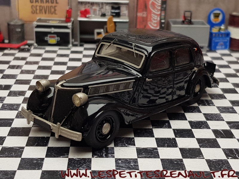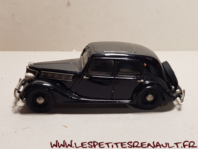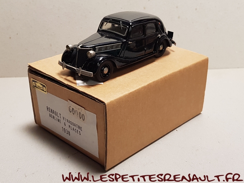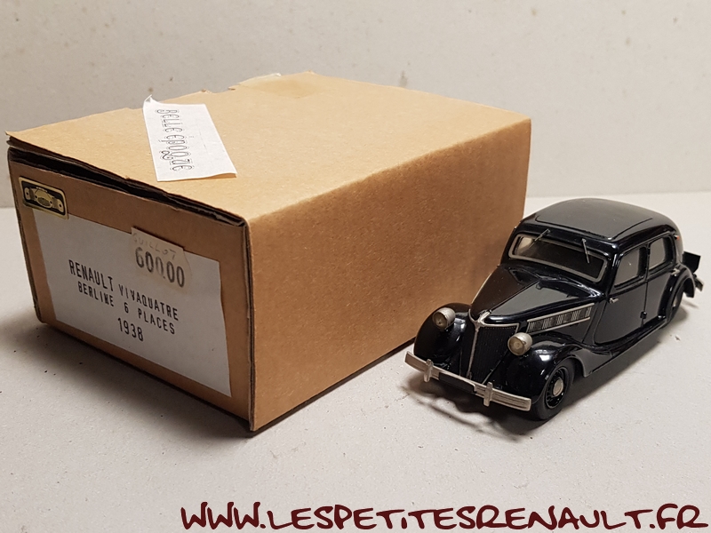 Modèle : Vivaquatre Grand Luxe Année : 1938 Couleur : Noire Echelle : 1/43 Fabricant : Epokit - Belle Epoque Référence : EP046 Collection : Non Matière : Résine Série limitée : Non Boitage : Boite carton Commentaires : Version Berline 6 places Grand Luxe type BDH-1. Identifiable grâce à sa calandre a ouïes verticales son pare-chocs droit, ses phares avant ajoutés et non encastrés et capot à 4 ouvertures latérales |