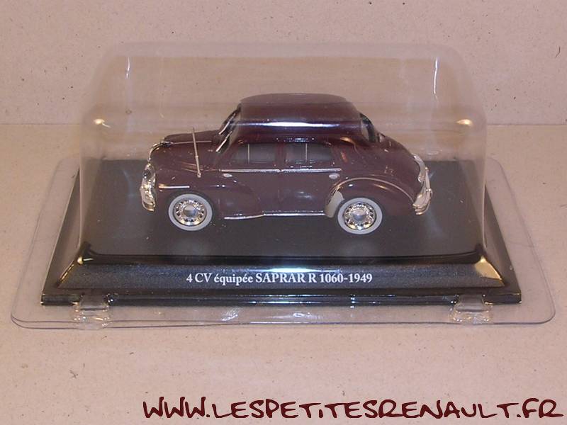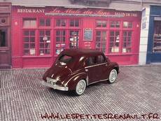 Modèle : 4 cv berline Luxe Année : 1949 Couleur : Bordeaux Echelle : 1/43 Fabricant : Eligor Référence : 22 Collection : 4 cv collection (Hachette) Matière : Zamak, châssis plastique Série limitée : Non Boitage : Socle + blister Commentaires : Type R1060. Version Luxe équipée SAPRAR. |