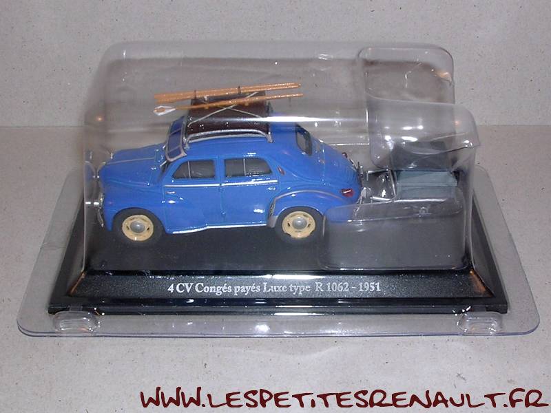 Modèle : 4 cv berline Luxe Année : 1951 Couleur : Bleue Echelle : 1/43 Fabricant : Eligor Référence : 27 Collection : 4 cv collection (Hachette) Matière : Zamak, châssis plastique Série limitée : Non Boitage : Socle + blister Commentaires : Type R1062. version Luxe. Déco Congés Payés avec bagages et remorque. |