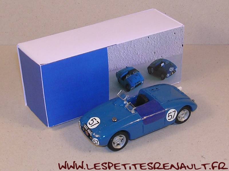 Modèle : 4 cv BMS Année : 1950 Course : 12 heures de Paris Equipage : #57 - Guy Michel/Jean Malleret Couleur : Bleue Echelle : 1/43 Fabricant : P. Monteil Référence : Sans référence Collection : Non Matière : Résine Série limitée : 5 exemplaires Boitage : Boite carton Commentaires : Dix neuvième au général et cinquième de sa classe de sa catégorie |