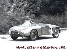 BMS pour Bosvin Michel Spéciale DE 1950 à 1955 elle à participé au Bol d'Or, GP de Reims, Mille Miglia, Bressuire, 24heures du Mans, tour de France. Camille Boisvin garagiste à Issoudan participe à des rallyes au volant d'une 4cv Renault, puis la transforme en barquette, gardant sa plateforme et ses suspensions, le moteur est un 747cc, la boite est à 5 vitesses (boite Claude), la carrosserie en alu est fabriquée par les frères Chappe, et ne pèse que 530kg. Sur la première version le moteur est en porte à faux arrière mais elle est rapidement modifiée en moteur central arrière pour inverser le sens de rotation et avoir 5 marches avant. La boite de vitesses est modifiée, la BMS est une des premières barquettes 4 cv dont le moteur est en central arrière comme les barquettes modernes, la carrosserie est également modifiée devenant plus courte et fuyante. |