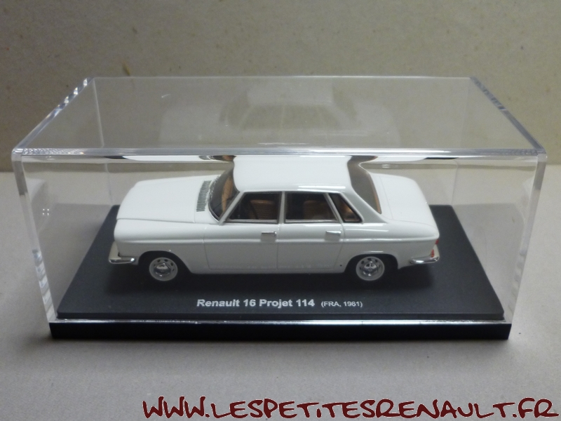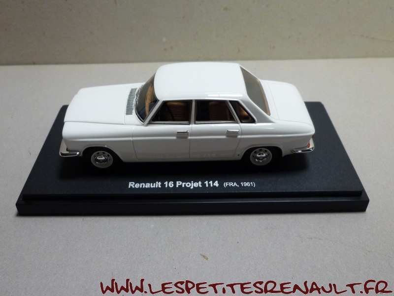 Le Projet 114 Le projet 114 était un des projets destinés à trouver un modèle pour remplacer la Fregate qui arrivait en bout de course. Ce projet était en concurrence avec un autre projet, le projet 115, lancé à la mê me époque, pour servir de base à la future R16 Une première maquette du projet 114 est réalisée à l'échelle 1 en 1958, d'après un dessin de Ghia puis, en 1961 un prototype roulant - à transmission aux roues arrières - voit le jour, équipé d'un moteur 6 cylindres de 2,2 l. De couleur blanche initialement, le prototype sera ensuite repeint en bleu/vert dans le cadre des présentations Le projet sera finalement abandonné par Pierre Dreyfus au profit du projet 115 qui servira de base au développement de la R16 |