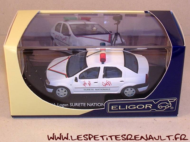 Modèle : Loga I ph 1 berline Année : 2006 Couleur : Blanche Echelle : 1/43 Fabricant : Eligor Référence : 101191 Collection : -- Matière : Zamak, châssis plastique Série limité : Non Boitage : Boite cristal 7x15 - Surboite Eligor Commentaires : Version Sureté nationale marocaine. Livrée avec un radar mobile |