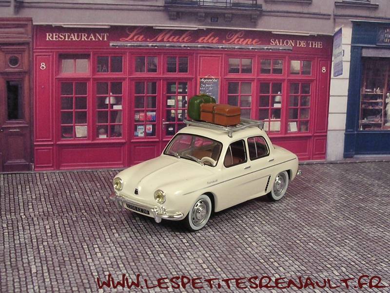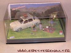 Modèle : Dauphine Année : 1962 Couleur : Beige Echelle : 1/43 Fabricant : Ixo Référence : 4 Collection : La route bleue (Altaya) Matière : Zamak, châssis plastique Série limité : Non Boitage : Boite cristal 10x16 Commentaires : Modèle issu du test de la collection. Livrée sur un diorama avec les personnages |