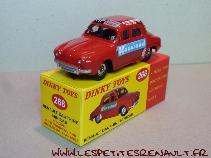 Modèle : Dauphine Année : 1957 Couleur : Rouge Echelle : 1/43 Fabricant : Dinky Toys - Norev Référence : 268 Collection : Collezione Dinky Toys Classiche - De Agostino Matière : Zamak, châssis tôle Série limité : Non Boitage : Boite carton Commentaires : Version minicab. Fabrication UK période 1962-1964. Ré-édition Norev pour De Agostini |