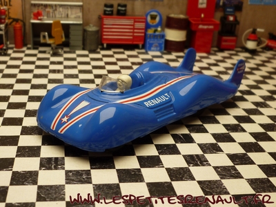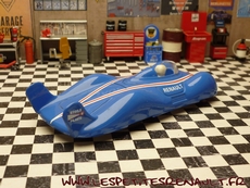 Modèle : Etoile Filante Année : 1956 Couleur : Bleue Echelle : 1/43 Fabricant : Quiralu - Eligor Référence : 7711147326 Collection : Non Matière : Zamak, châssis tôle Série limitée : Non Boitage : Boite carton Commentaires : Ré-édition 2001. Véhicule propulsé par une turbine à gaz Turbomeca de 270 chevaux qui établiera un record de vitesse terrestre de 308,85 km/h, le 5 septembre 1956 sur la piste de Bonneville aux Etats-Unis |