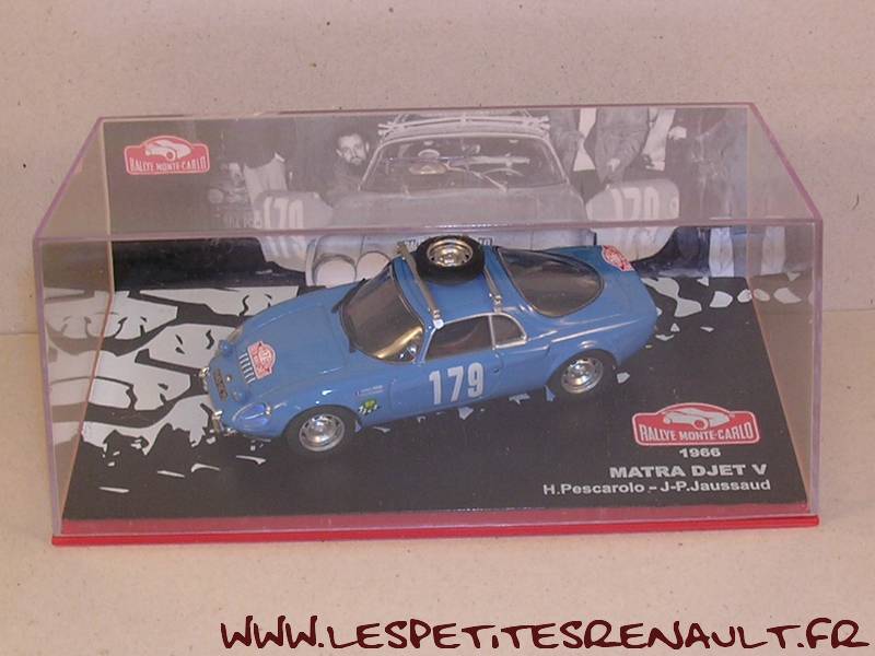 Modèle : Matra DJET V Année : 1966 Course : Rallye Monte Carlo Equipage : #179 - H Pescarolo et JP Jaussaud Couleur : Bleue Echelle : 1/43 Fabricant : Ixo Référence : 27 Collection : Rallye Monte Carlo (Altaya) Matière : Zamak, châssis plastique Série limitée : Non Boitage : Boite cristal 7X15 Commentaires : -- |