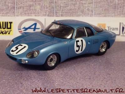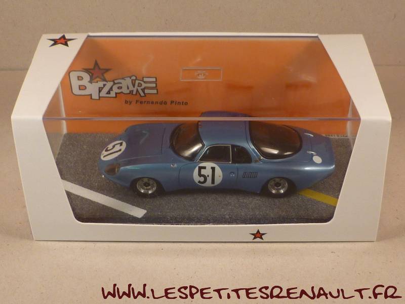 Modèle : Aérodjet LM6 Année : 1963 Course : Le Mans Equipage : #51 - Masson/Monneret Couleur : Bleue métallisé Echelle : 1/43 Fabricant : Bizarre Référence : BZ449 Collection : Non Matière : Résine Série limitée : Non Boitage : Boite cristal 7x14 Commentaires : Créée par René Bonnet après la dissolution de DB, l'entreprise construisit l'Aérodjet, qui participa aux 24 Heures du Mans en 1963 et 1964 avant d'être racheté par Matra en 1964. la 51 abandonna suite à un accident |