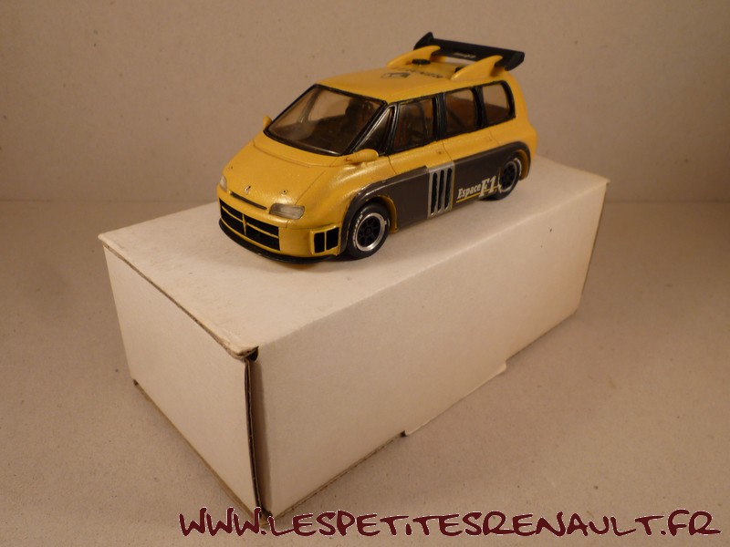 Modèle : Espace F1 Année : 1994 Couleur : Jaune Echelle : 1/43 Fabricant : JPS Référence : KP62 Collection : Non Matière : Résine Série limité : Non Boitage : Boite carton Commentaires : Version dynamique (roulante) équipée d'un moteur V10 de 3500 cm3 et développant 800cv |