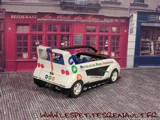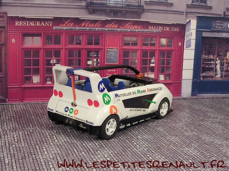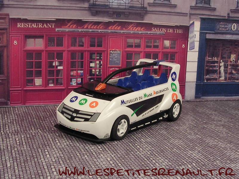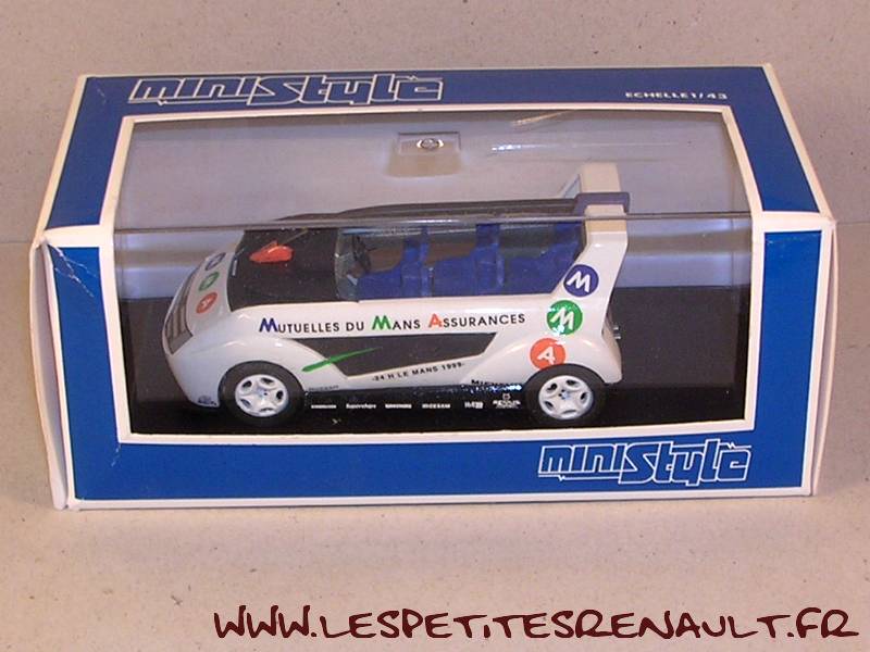 Modèle : Espace Sbarro Année : 1999 Couleur : Blanc Echelle : 1/43 Fabricant : Ministyle Référence : MIN907 Collection : Non Matière : Résine Série limité : Non Boitage : Boite cristal 7x15, surboite Ministyle Commentaires : Sbarro Proteus ayant servi au transport de VIP lors des 24h du Mans 1999. Véhicule de parade construit sur la base d'un Renault Espace 2.2 L 140 ch en collaboration avec MMA (Mutuelle du Mans Assurance). Le Proteus offre six places et se caractérise par absence de pare-brise et par un arceau de sécurité central qui va de l'avant vers l'arceau arrière. Destiné à ne rouler que sur circuit, le Proteus ne possède ni phares ni feux arrière. |