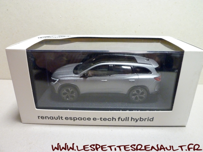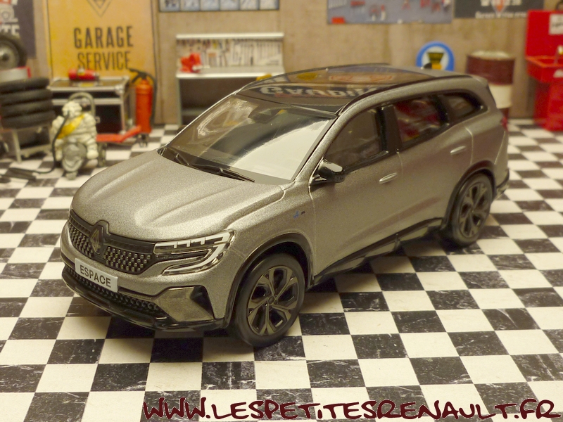 Modèle : Espace VI Année : 2023 Couleur : Gris métallisé Echelle : 1/43 Fabricant : Norev Référence : 7717300130 Collection : Non Matière : Zamak, châssis plastique Série limitée : Non Boitage : Boite cristal + surboite Commentaires : Version e-Tech Full Hybrid de couleur Esprit Alpine Gris Schiste Satin |