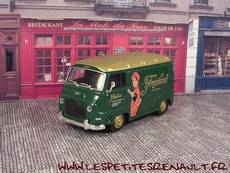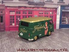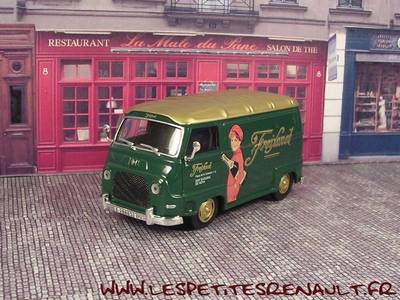 Modèle : Estafette tôlée Année : 1965 Couleur : Vert foncé et doré Echelle : 1/43 Fabricant : Ixo Référence : 4 Collection : Furgonetas de Antano (Altaya ES) Matière : Zamak, châssis plastique Série limité : Non Boitage : Boite cristal 7x15 Commentaires : Décoration Freixenet |