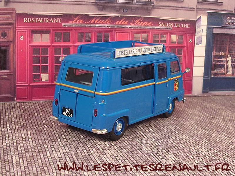 Modèle : Estafette vitrée Année : 1967 Couleur : Bleu Echelle : 1/43 Fabricant : Eligor Référence : 23 Collection : Petits utilitaires francais (Atlas) Matière : Zamak, châssis plastique Série limité : Non Boitage : Boite cristal 7x15 Commentaires : Version minibus. Décoration Hostellerie du Vieux Moulin. Miniature non conforme. Un modèle 1967 devrait avoir les clignotant blancs et pas orange et blanc. |
