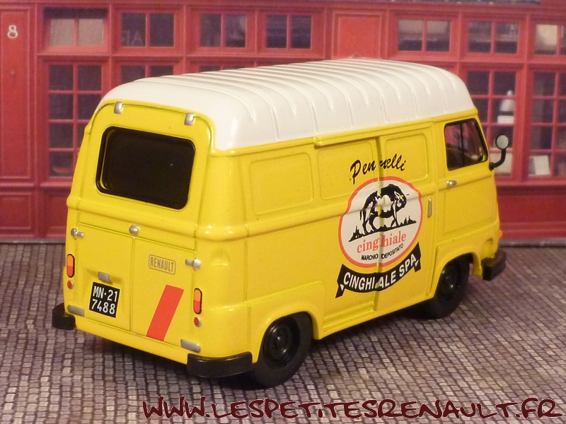 Modèle : Estafette tôlée réhaussée Année : 1968 Couleur : Jaune Echelle : 1/43 Fabricant : Ixo Référence 64 Collection : Veicoli pubblicitari d'epoca (Eaglemoss) Matière : Zamak, châssis plastique Série limité : Non Boitage : Boite cristal 7x15 Commentaires : Décorée aux couleurs de Pennelli Cinghiale. Modèle utilisé en 1974 par la marque mais datant de la période 1968-1971 vue la forme de la calandre et les marchepieds dans le pare-chocs |