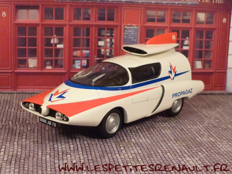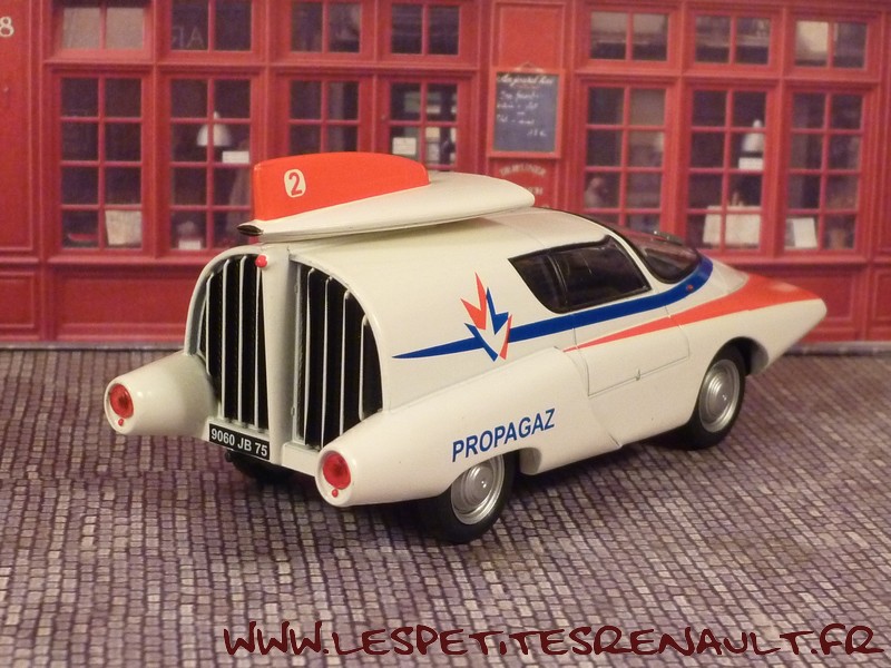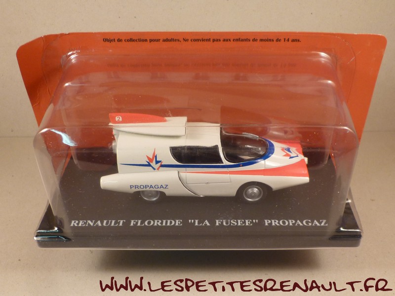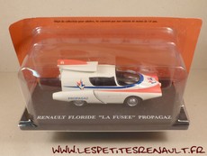 Modèle : Floride recarrossée Année : 1959 Couleur : Bleu, blanc et rouge Echelle : 1/43 Fabricant : Ixo Référence : 51 Collection : Véhicules publicitaires (Auto Plus) Matière : Zamak, châssis plastique Série limitée : Non Boitage : Socle + blister Commentaires : Version recarrossée par Chapon et décorée aux couleurs de Propagaz pour le Tour de France 1959. Il s'agit d'une série de 6 voitures, 3 bleues et blanches aux couleurs de Butagaz et 3 rouges et blanches aux couleurs de Propagaz. Chaque véhicule était numéroté sur la dérive au dessus de la voiture (1, 2 et 5 pour les Propagaz) avec des répartitions de couleurs qui vont évoluer au fil des années. |