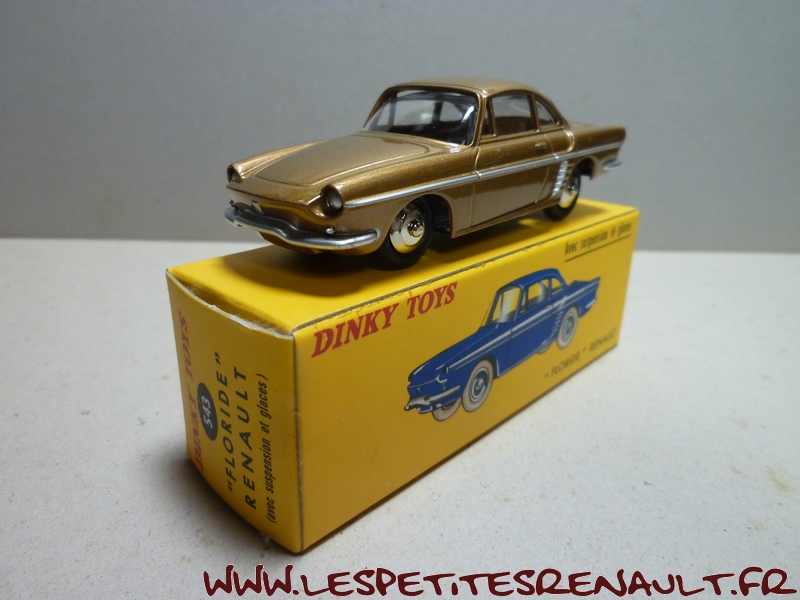 Modèle : Floride coupé Année : 1959 Couleur : Bronze métallisé Echelle : 1/43 Fabricant : Norev Référence : 34 Collection : Collezione Dinky Toys Classiche (Deagostini) Matière : Zamak, châssis tôle Série limitée : Non Boitage : Boite carton Commentaires : Réédition de la référence 547 de chez Dinky Toys |