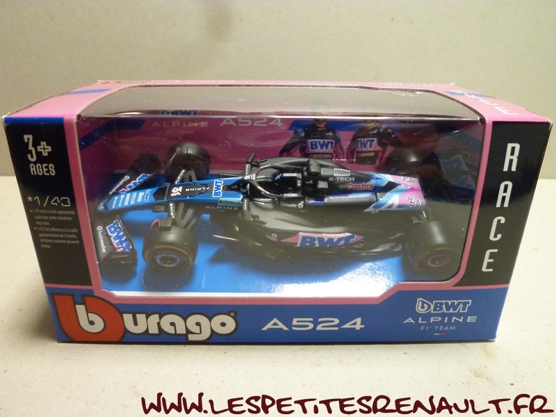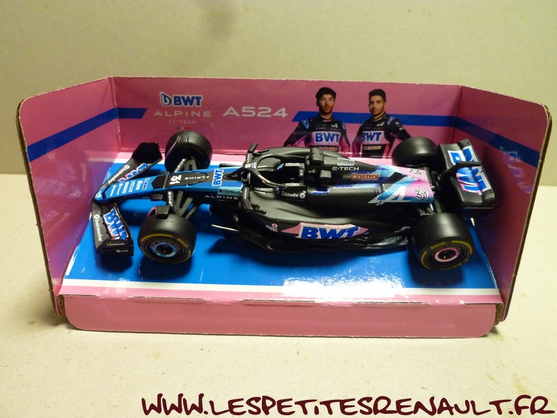Modèle : Alpine A 524 Année : 2024 Course : GP du Japon Pilote : #31 - Esteban Ocon Couleur : Bleue et noire Echelle : 1/43 Fabricant : Bburago Référence : 18-38219 01 Collection : Non Matière : Résine, châssis plastique Série limitée : Non Boitage : Boite carton + plastique Commentaires : -- |