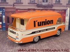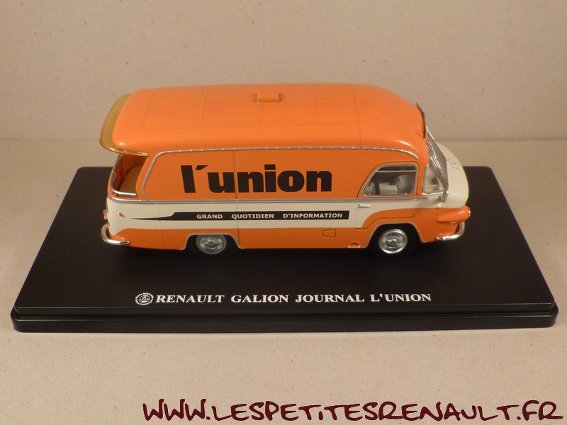 Modèle : Galion recarrossé Année : 1958 Couleur : Orange et blanc Echelle : 1/43 Fabricant : Ixo Référence : 32 Collection : Véhicules Publicitaires (Auto Plus) Matière : Zamak, châssis plastique Série limité : Non Boitage : Socle + blister Commentaires : Version recarossée par les ateliers Le Bastard de Rouen pour le journal L'Union. Véhicule utilisé sur plusieurs coures cycliste à l'époque. Utilisé ensuite comme véhicule publicitaire de la marque Point S. Propriété depuis 2002 du musée automobile Reims Champagne |