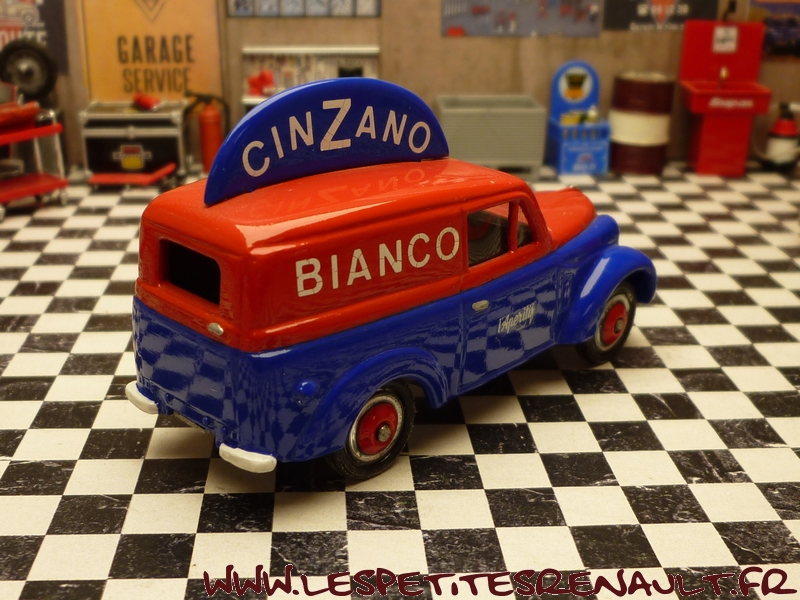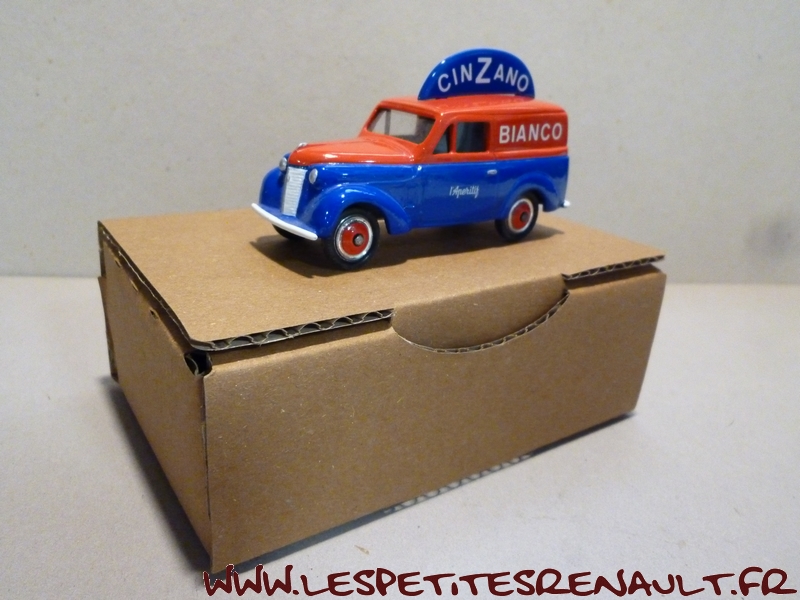 Modèle : Dauphinoise tôlée Année : 1956 Couleur : Rouge et bleue Echelle : 1/45 Fabricant : LPR créations Référence : LPR0304-1 Collection : Non Matière : Zamak, châssis tôle Série limitée : 1/1 Boitage : Boite carton Commentaires : Décoration Cinzano. Réalisation Code3 sur une base de Dauphinoise CIJ |