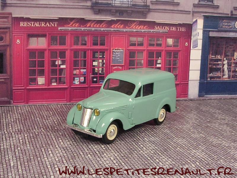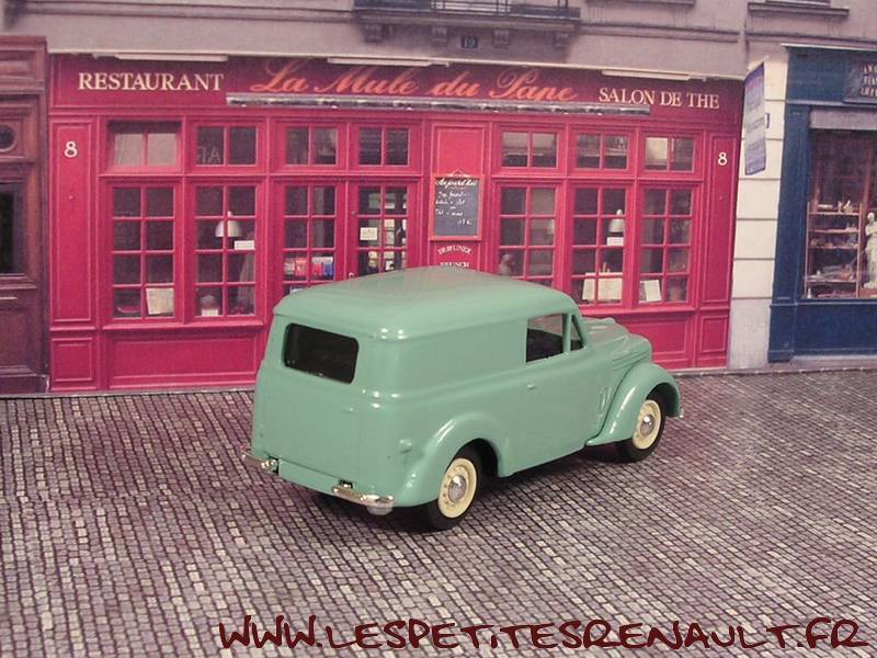 Modèle : Dauphinoise tôlée Année : 1956 Couleur : Vert clair Echelle : 1/43 Fabricant : Eligor Référence : 100643 Collection : Non Matière : Zamak, châssis plastique Série limitée : Non Boitage : Boite cristal + surboite Commentaires : Modèle annoncé comme étant une Juvaquatre par Eligor, mais il s'agit d'une carrosserie de Dauphinoise avec une calandre sans logo Renault et des roues artillerie de Juvaquatre. Couleur gris-vert proche du RAL6019 (Vert blanc) |