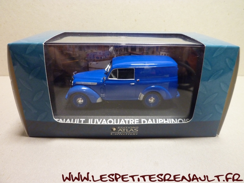 Modèle : Dauphinoise tôlée Année : 1956 Couleur : Bleue Echelle : 1/43 Fabricant : Ixo Référence : 31 Collection : Les voitures de mon père (Atlas) Matière : Zamak, châssis plastique Série limitée : Non Boitage : Boite cristal + surboite Atlas Commentaires : Modèle présenté comme étant une Juvaquatre Dauphinoise. Il s'agit en fait simplement d'une Dauphinoise |