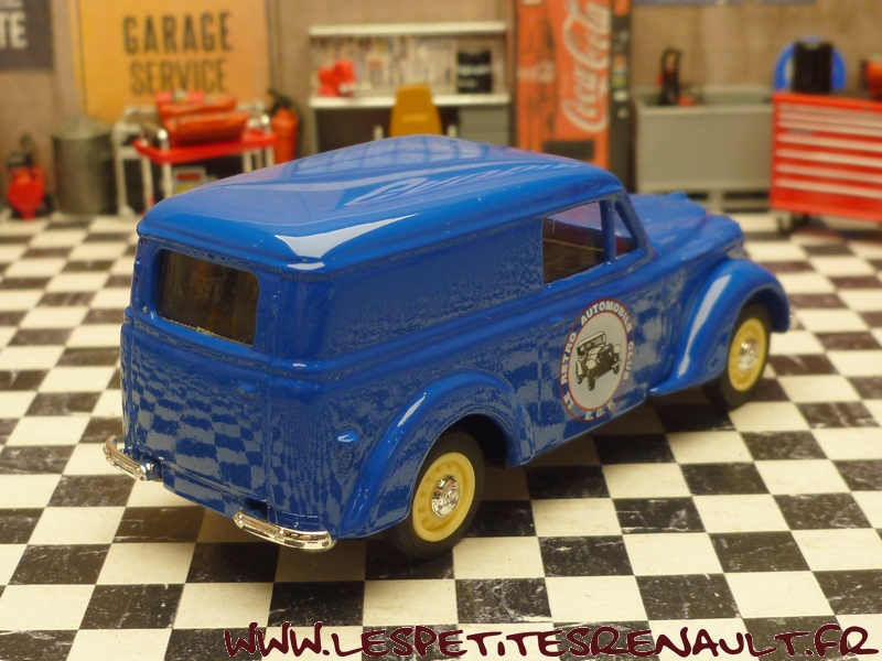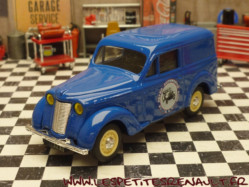 Modèle : Dauphinoise break tôlé Année : 1956 Couleur : Bleue Echelle : 1/43 Fabricant : Eligor Référence : 100790 Collection : Non Matière : Zamak, châssis plastique Série limitée : Oui Boitage : Boite cristal + surboite Commentaires : Modèle promotionnel réalisé pour le RAC EGF - Rétro Automobile Club des Electriciens et Gaziers de France. Annoncée comme juvaquatre, mais la caisse est celle d'une Dauphinoise. Il manque juste le logo Renault sur la calandre |