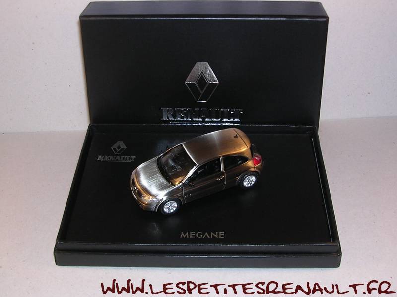 Modèle : Megane II ph1 coupé Année : 200 Couleur : Gris metallisé Echelle : 1/43 Fabricant : Norev Référence : 7711221715 Collection : Non Matière : Zamak, châssis plastique Série limitée : Non Boitage : Coffret noir Renault Commentaires : Finition aspect traitement matière |