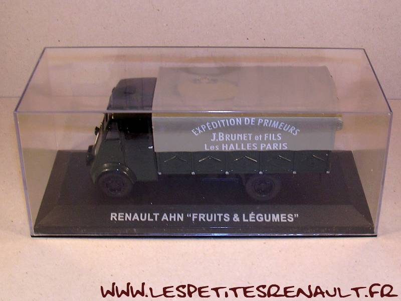 Modèle : AHN Plateau BâchéAnnée : 1945 Couleur : Vert foncé Fabriquant : Ixo Référence : 56 Collection : Camionnettes d'antan (Altaya) Matière : Zamak, châssis plastique Série limité : Non Boitage : Boite cristal 8x19 Commentaires : Décoration Expédition de primeurs J Brunet et Fils |