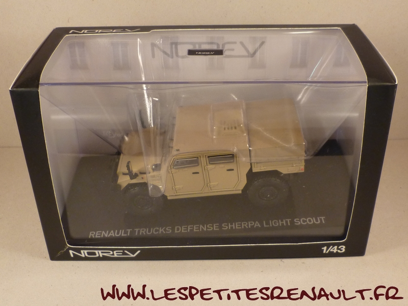Modèle : Sherpa Light ScoutAnnée : 2010 Couleur : Beige Fabriquant : Norev Référence : 519902 Collection : -- Matière : ABS Série limité : Non Boitage : Boite cristal 20x10 surboite Norev Commentaires : Renault Truck Defense Sherpa Light Scout |
