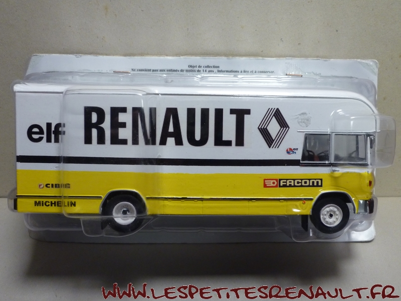 Modèle : Berliet GBK 75 Année : 1968 Couleur : Blanc et jaune Echelle : 1/43 Fabricant : Ixo Référence : N/A Collection : Non Matière : Zamak, châssis plastique Série limitée : Non Boitage : Blister Commentaires : Décoration Assistance Renault. Code 3 réalisé á partir du GBK 75, #2 de la série presse Collection Berliet (Demeco). |