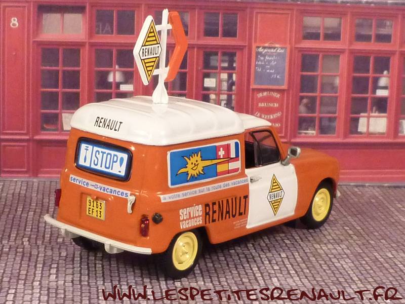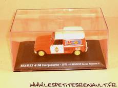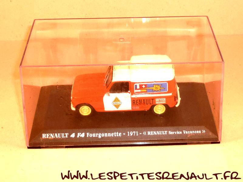 Modèle : Renault 4 F4Année : 1971 Couleur : Orange et blanc Fabriquant : Universal Hobbies Référence : 81 Collection : Renault Collection (M6) Matière : Zamak, châssis plastique Série limité : Non Boitage : Boite cristal 8x15. Commentaires : Décoration Renault Service vacances |